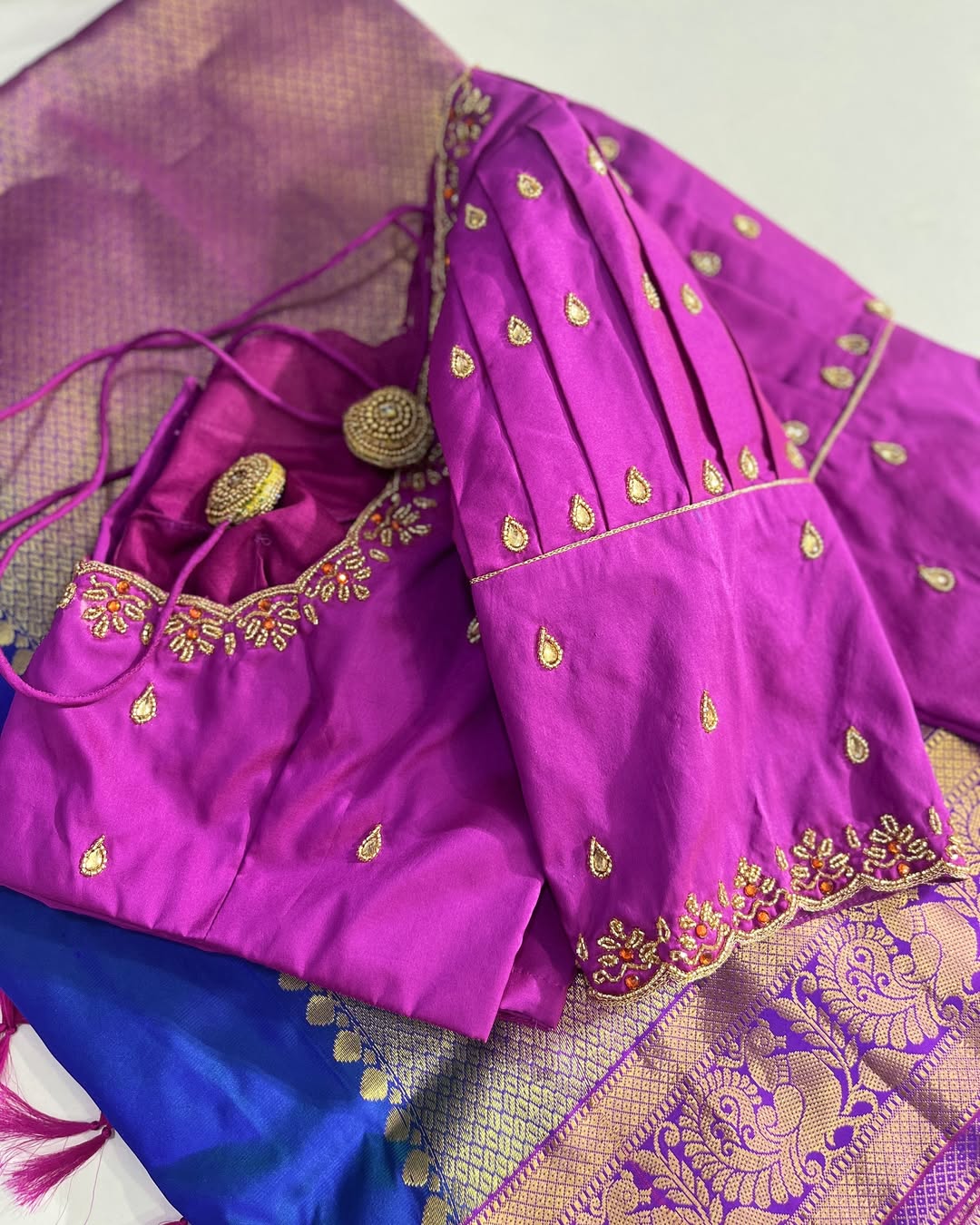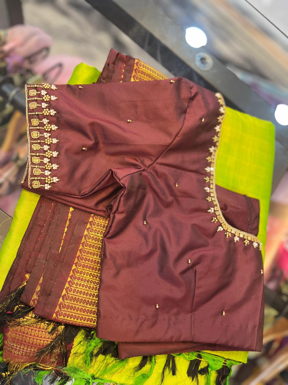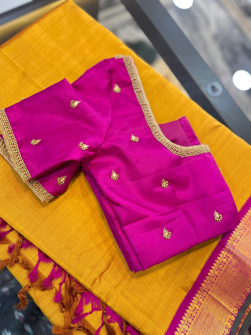 - Our expert artisans specialize in aari work, hand embroidery, and intricate detailing, making each blouse a masterpiece of craftsmanship.