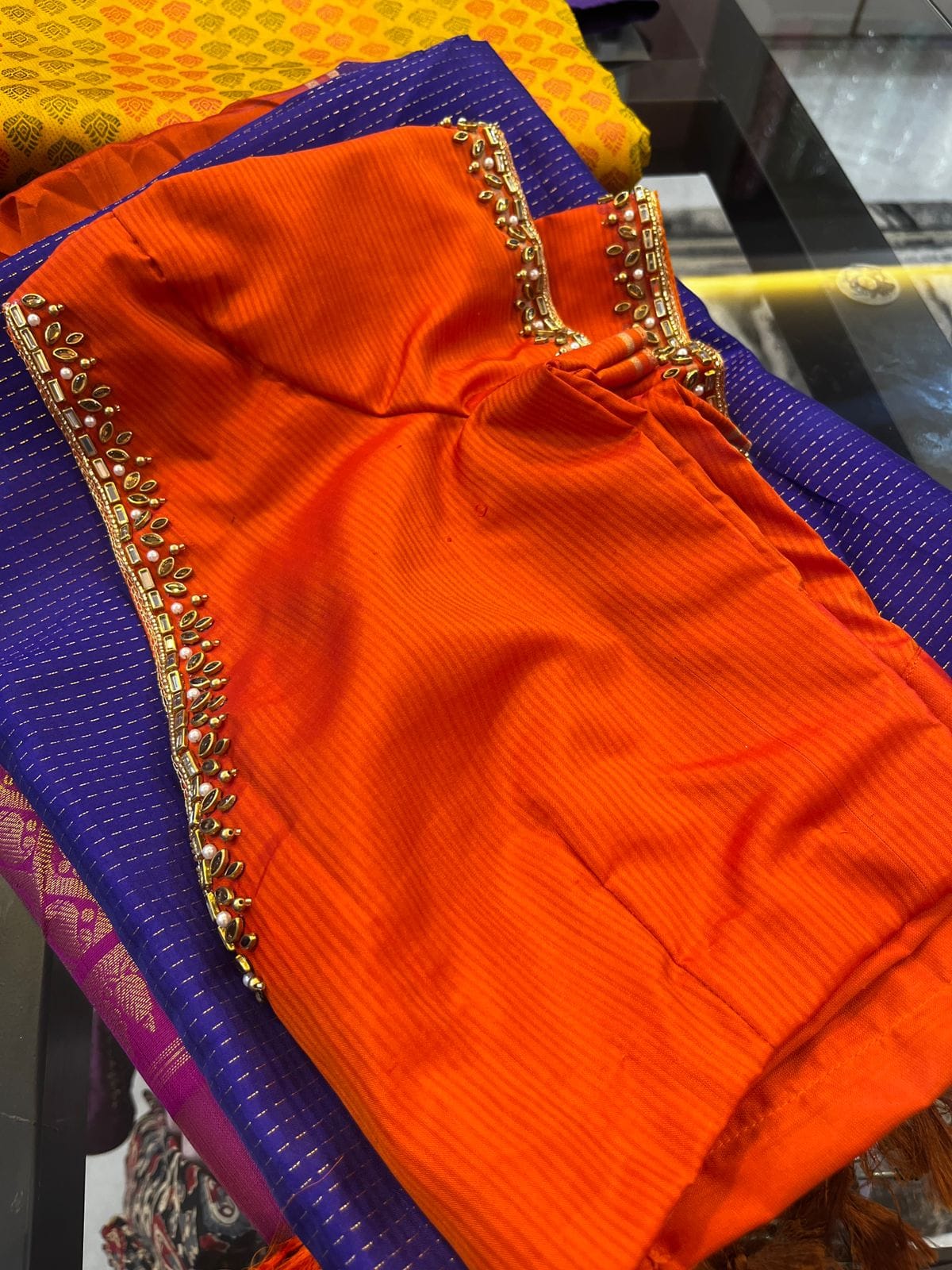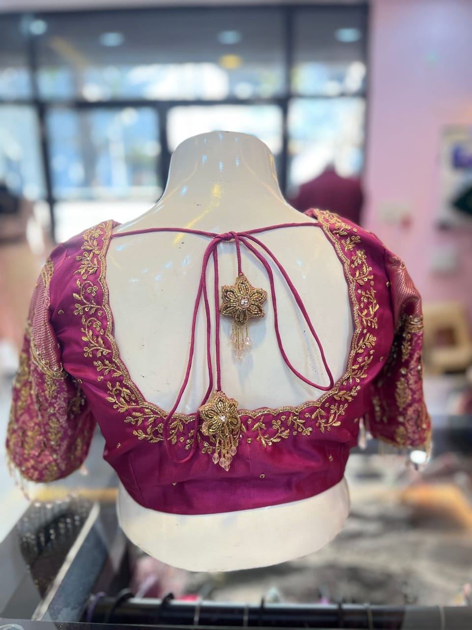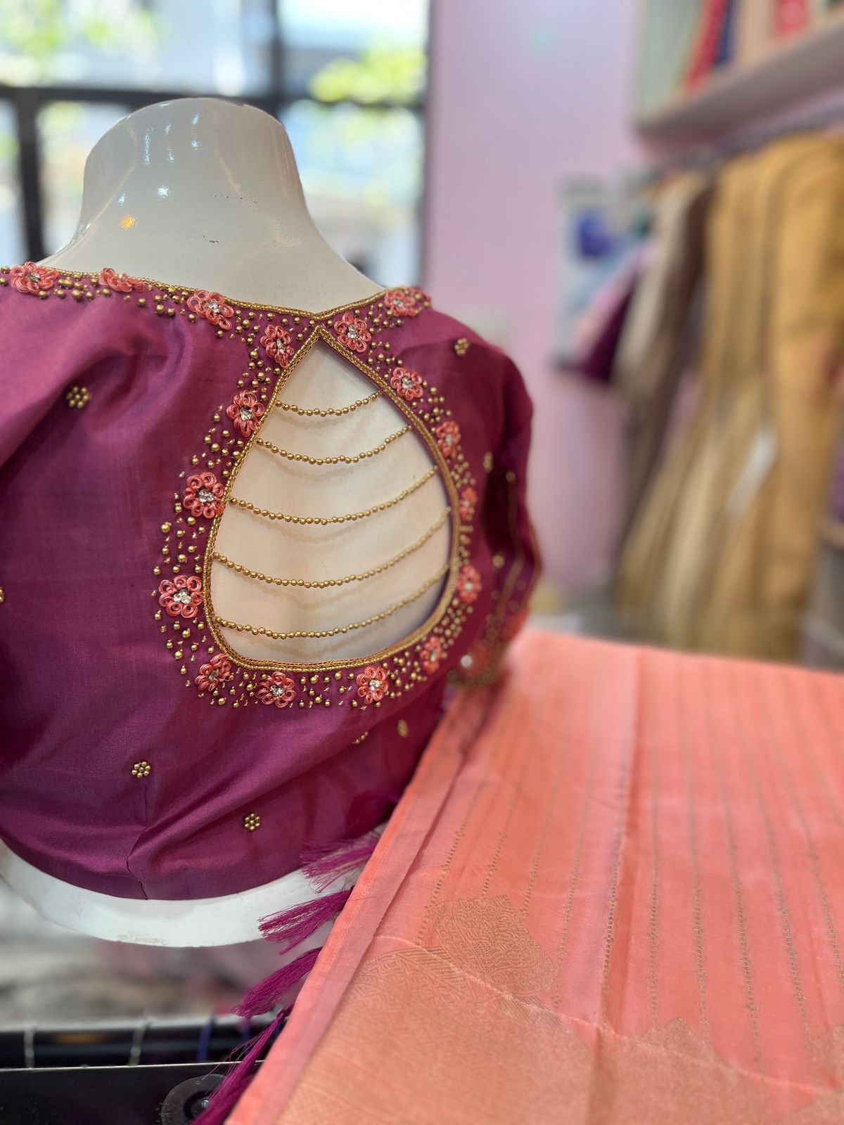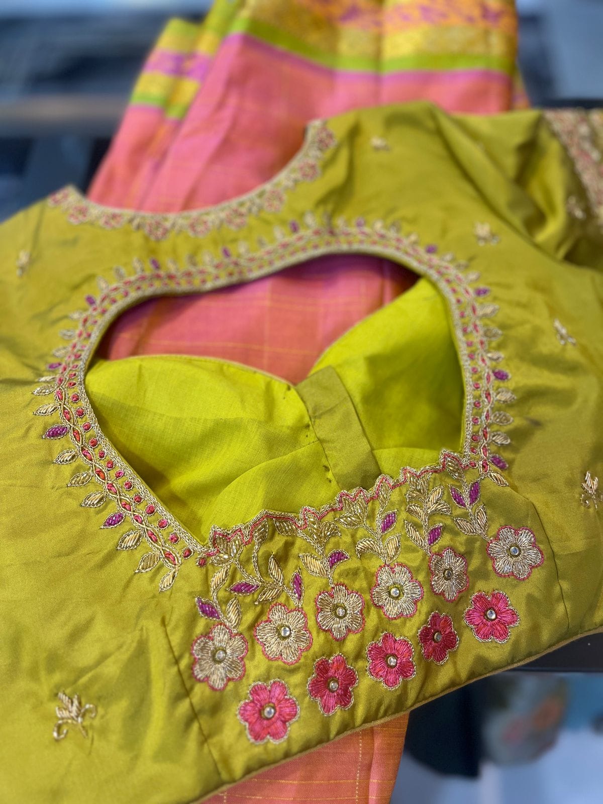 - Our expert artisans specialize in aari work, hand embroidery, and intricate detailing, making each blouse a masterpiece of craftsmanship.