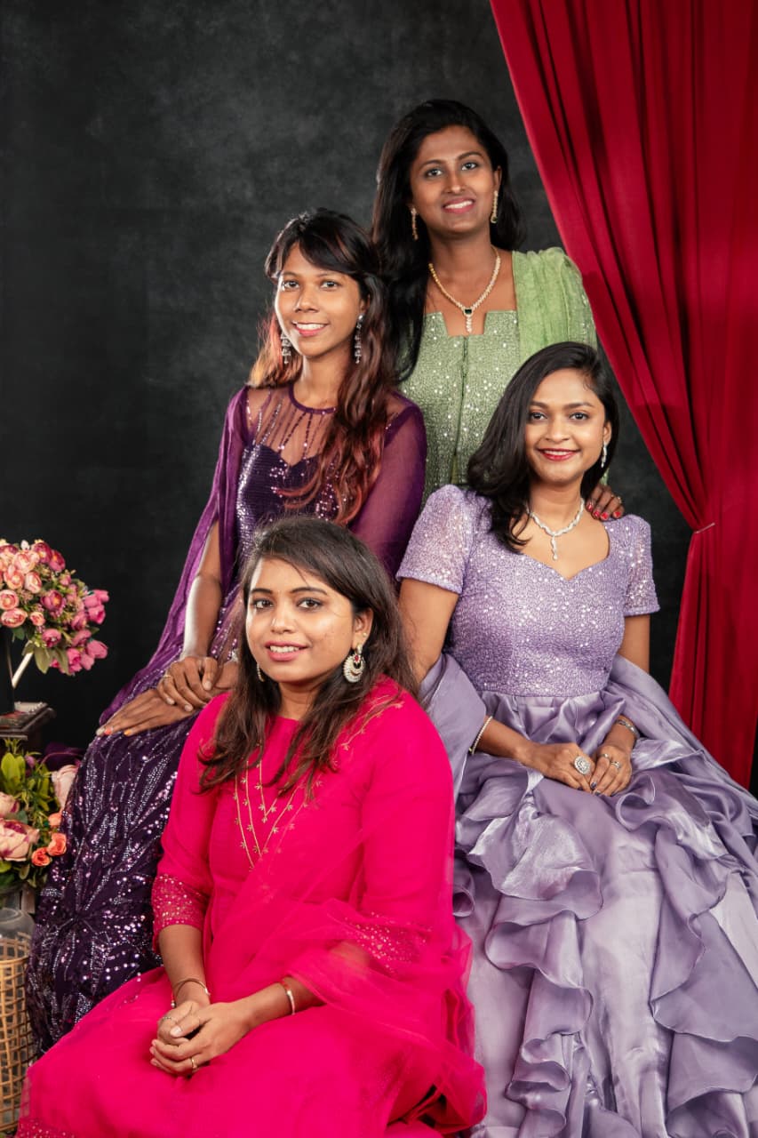 The highlight of the outfit is its dramatic layered ruffle skirt, crafted from flowy fabric that creates a stunning silhouette with every movement. The cascading layers add volume and grace, making it an ideal choice for receptions, cocktail parties, evening celebrations, and red-carpet events.